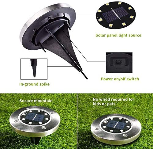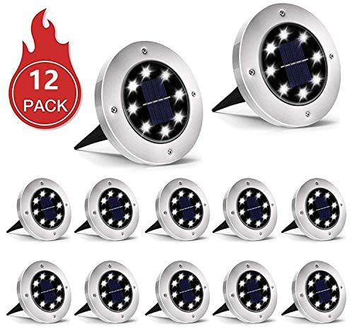 INCX Solar Ground Lights, 12 Packs 8 LED Solar Garden Lamp Waterproof In-Ground Outdoor Landscape Lighting for Patio Pathway Lawn Yard Deck Driveway Walkway White