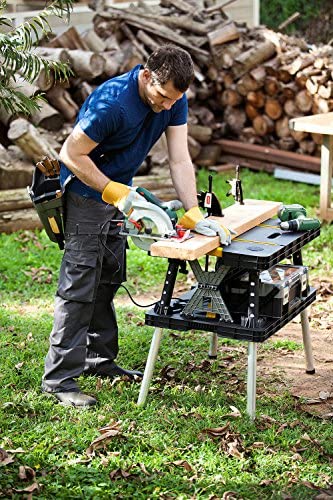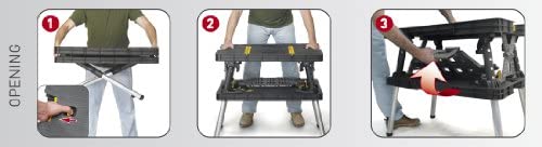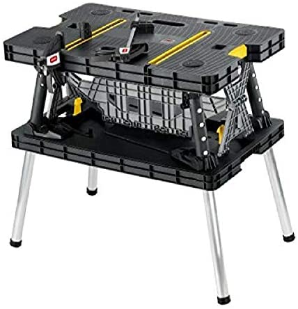 Whether you’re a contractor or a DIY enthusiast, the Folding Work Table by Keter provides a sturdy yet portable work space for a wide variety of projects. From home improvement projects to commercial construction work, this folding workbench helps you get the job done in any type of setting. Whether you need a sawhorse for cutting jobs or a place to rest boards for painting, a pair of one-handed clamps holds your project materials securely in place. Count on this folding work table to provide dependable work support for everything from sanding two-by-fours to staining table legs. Durable steel legs provide the support you need to feel confident while performing any task. Try it for one project and the bench will become your go-to source for reliable work support.