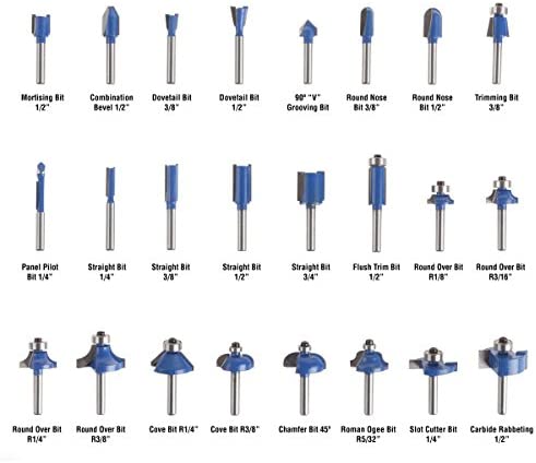 MULTIFUNCTIONAL SET – With 24 included pieces, this kit is great for multipurpose uses. It is perfect for woodworking, edging, trimming, grooving, veining wood projects, and ideal for carpenters and hobbyists of all experience levels. This set also includes an allen wrench for removing bearings.
