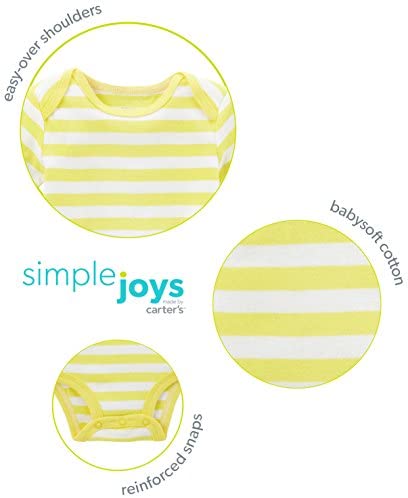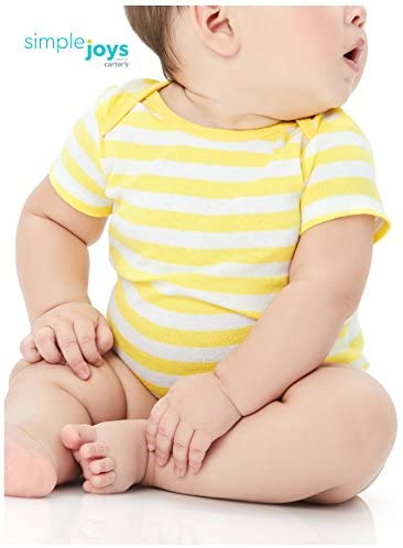 An Amazon Brand – Six short-sleeve bodysuits in baby-soft cotton featuring stripes, prints, and solids